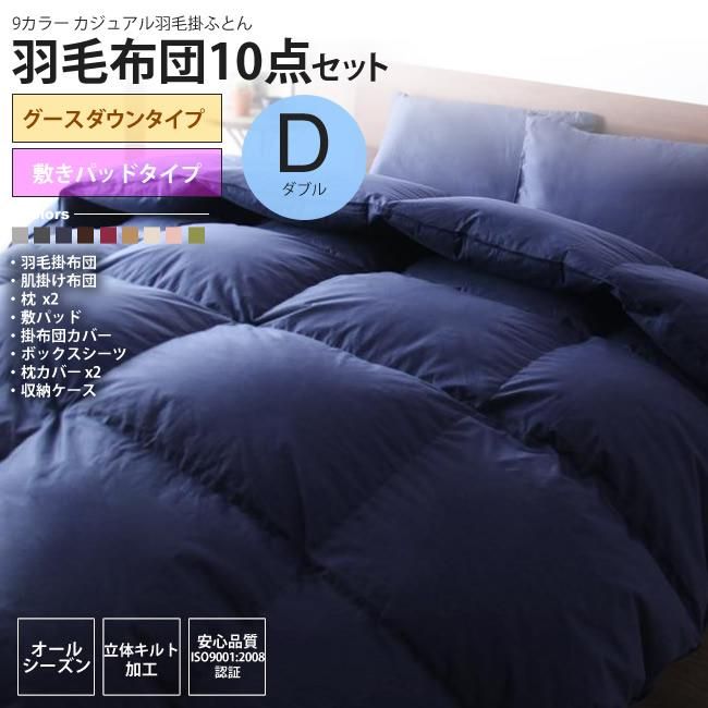 ダブル 敷きパッドタイプ グースダウン : 9カラー 羽毛布団セット 寝具 布団セット