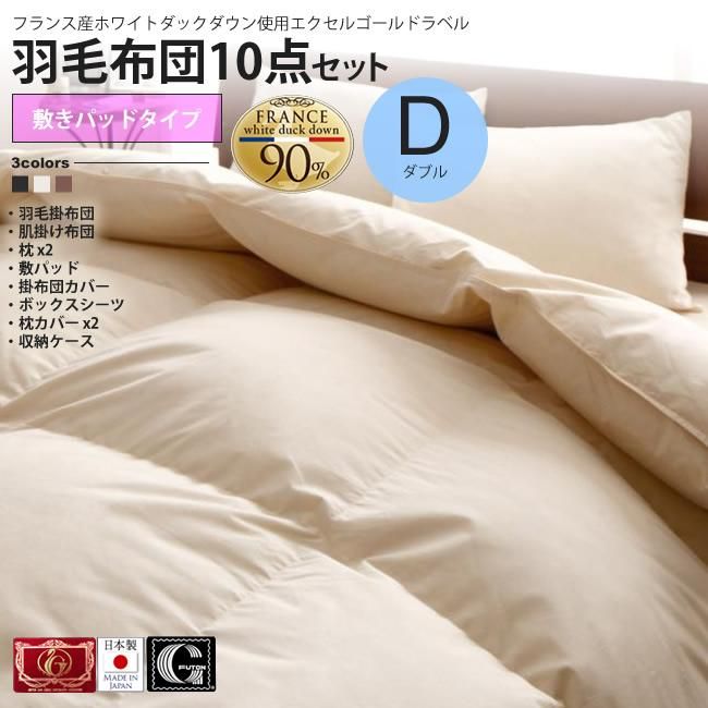 ダブル 敷きパッドタイプ : 羽毛布団セット エクセルゴールドラベル 寝具 布団セット
