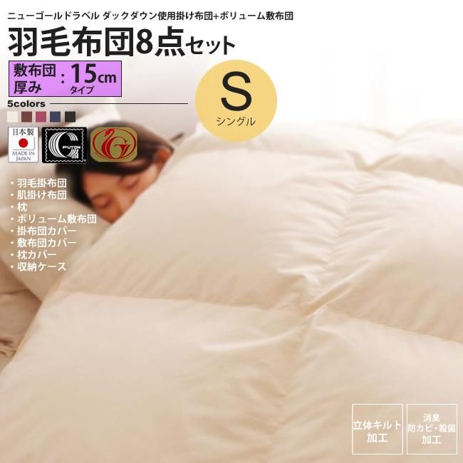 敷厚15cmタイプシングル 羽毛掛け布団 + ボリューム敷ふとんセット 防カビ 消臭 布団セット