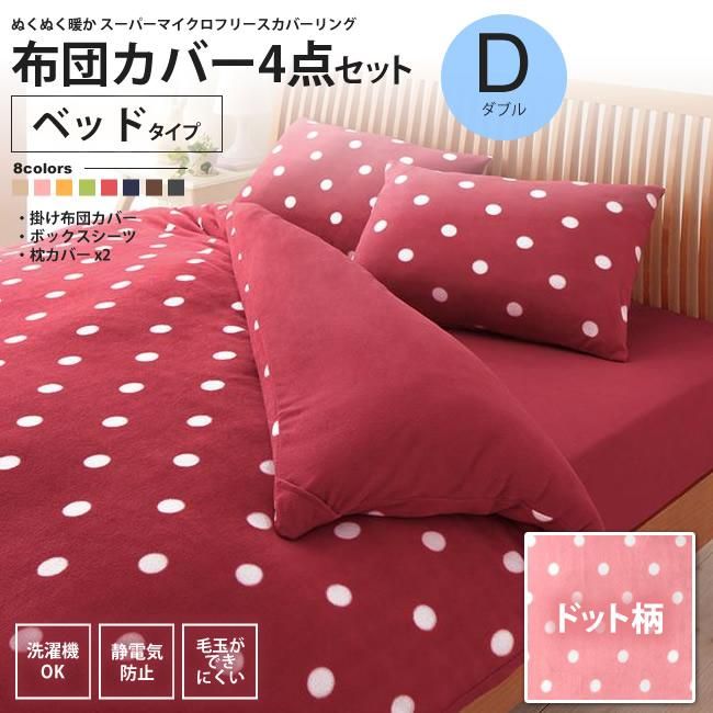 商品名 布団カバーセット ベッド用 ダブル ドット柄 スーパー マイクロフリース カバー、シーツセット おしゃれ 冬