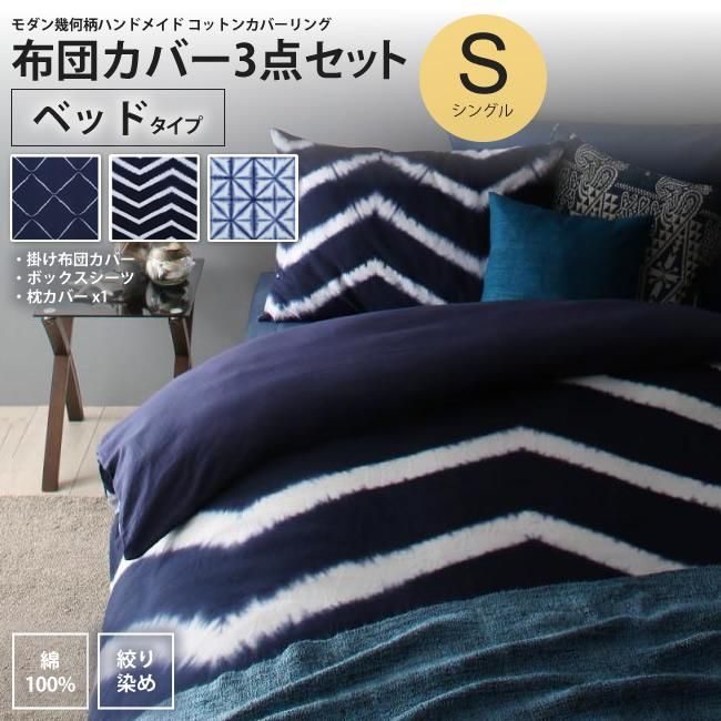 布団カバーセット 3点 シングル ベッド用 : 絞り染め モダン幾何柄 コットンカバーリング カバー、シーツセット