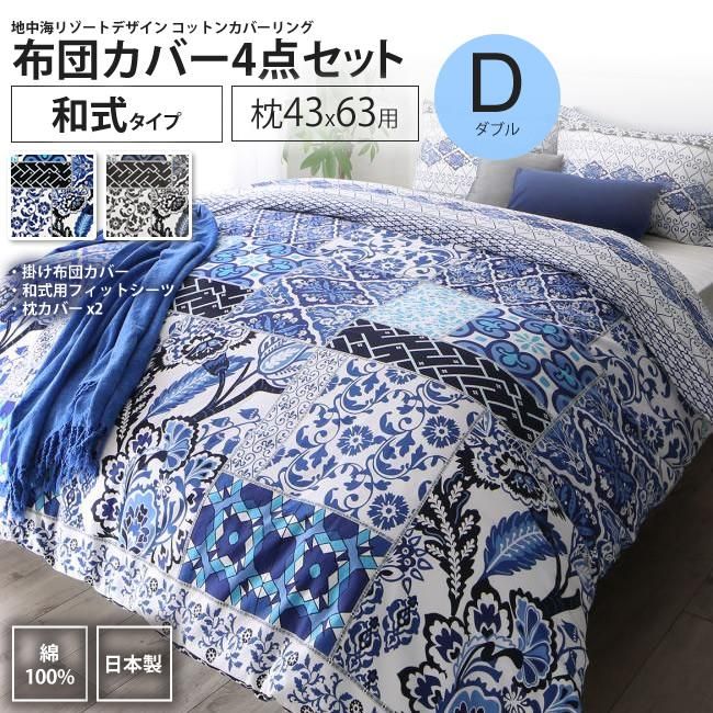 布団カバーセット ダブル 和式用 枕43×63用 リゾート デザイン コットンカバーリング カバー、シーツセット