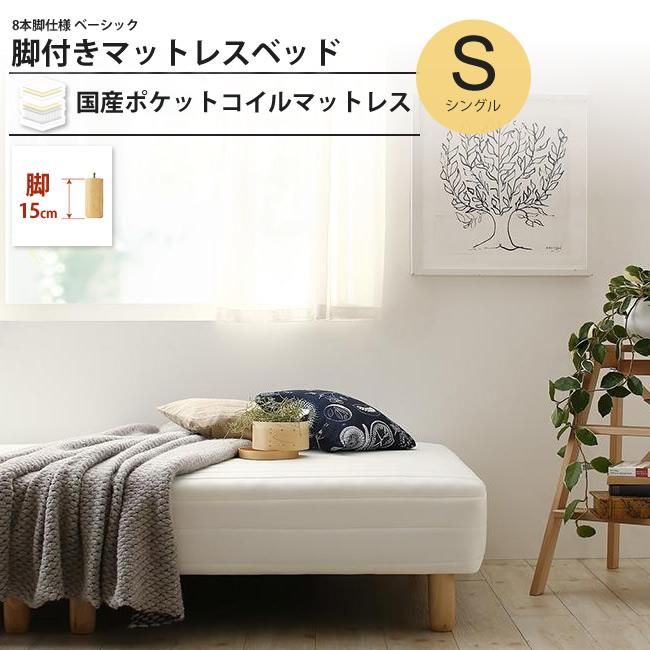 ベッド シングル 脚15cm 脚付マットレス 国産 ポケットコイル おしゃれ 脚付きマットレスベッド