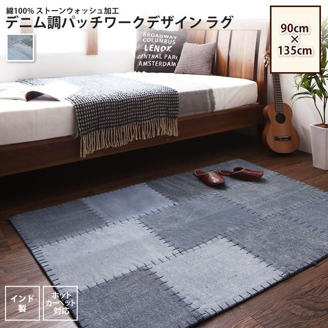 ¥é¥° ¥é¥° 90¡ß135cm ÌÊ100% ¥Ç¥Ë¥àÄ´¥Ñ¥Ã¥Á¥ï¡¼¥¯¥Ç¥¶¥¤¥ó¥é¥° ¥Þ¥Ã¥È ¤ª¤·¤ã¤ì ¥«¡¼¥Ú¥Ã¥È¡¢¥é¥°