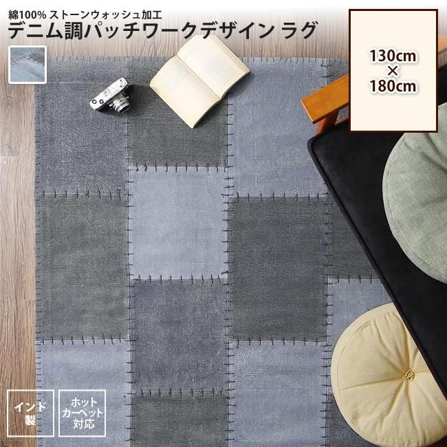 ¥é¥° ¥é¥° 130¡ß180cm ÌÊ100% ¥Ç¥Ë¥àÄ´¥Ñ¥Ã¥Á¥ï¡¼¥¯¥Ç¥¶¥¤¥ó¥é¥° ¥Þ¥Ã¥È ¤ª¤·¤ã¤ì ¥«¡¼¥Ú¥Ã¥È¡¢¥é¥°