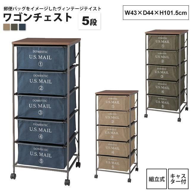 チェスト 5段 おしゃれ ワゴン キャスター付 MIP-375 BE/GR/NV USメールチェスト 5段