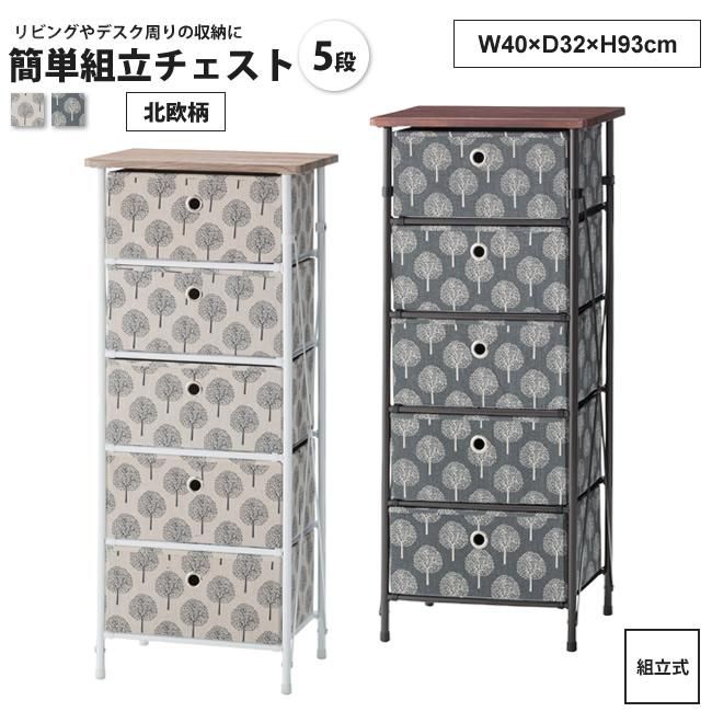 チェスト 5D 北欧柄 おしゃれ 簡単組立 北欧 引出し リビング収納 LFS-655 BE/GY 簡単組立チェスト5D