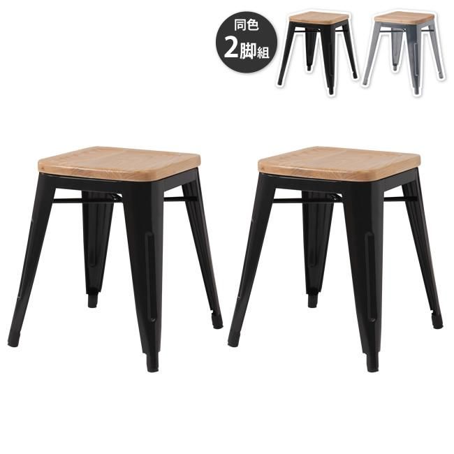 スツール 2脚セット 背なし おしゃれ インダストリアル ダイニング ワーク ガレージ 天然木 スチール PC-261 BK/SV x2個 スツール 2脚セット