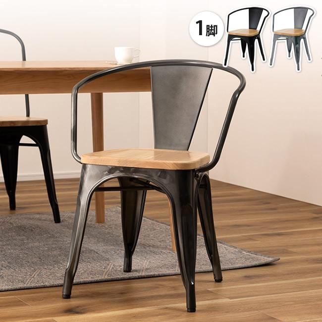 商品名 アームチェアー 1脚 単品 おしゃれ 肘掛け付き インダストリアル ダイニング ワーク ガレージ 天然木 スチール PC-263 BK/SV アームチェア