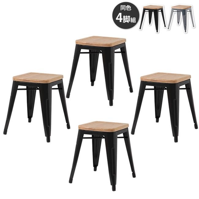 スツール 4脚セット 背なし おしゃれ インダストリアル ダイニング ワーク ガレージ 天然木 スチール PC-261 BK/SV x4個 スツール 4脚セット