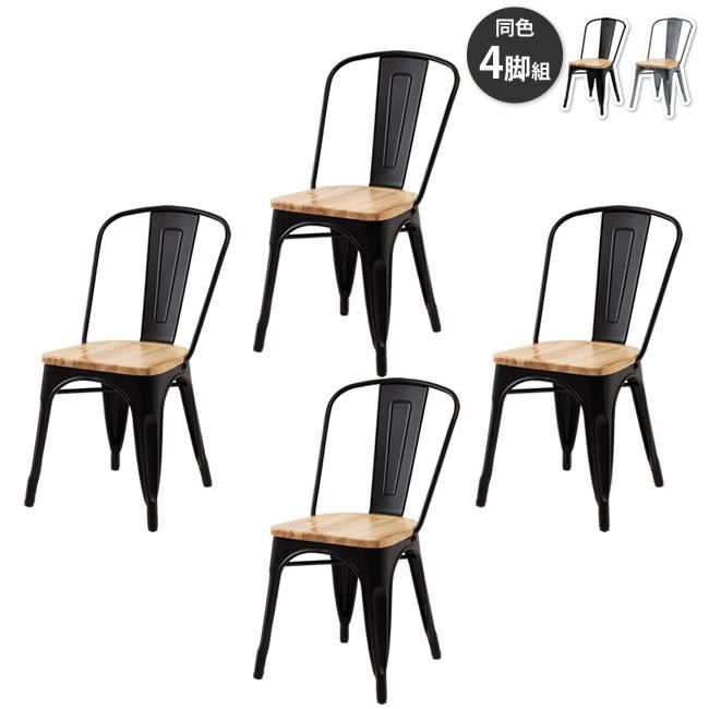 チェアー 4脚セット おしゃれ インダストリアル ダイニング ワーク ガレージ 天然木 スチール PC-262 BK/SV x4個 スツール 4脚セット