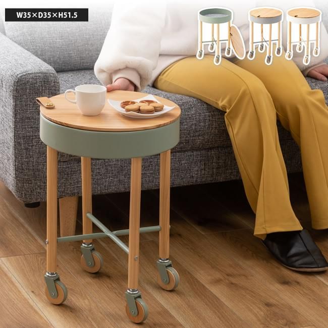 サイドテーブル おしゃれ 北欧 木脚 収納付き 樹脂製 スクエア 正方形 PT-980 GY/WH/YE