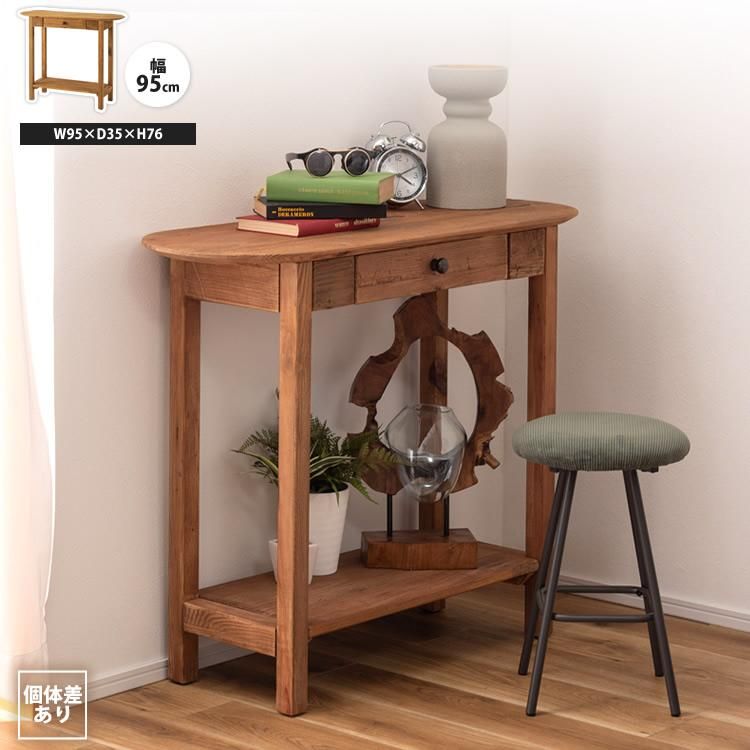 コンソールテーブル 幅95 パイン古材 おしゃれ シェルフ 玄関 リビング収納 アンティーク調 WE-891 コンソール