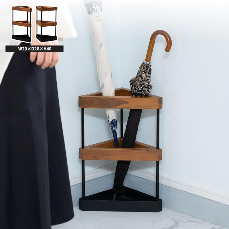 傘立て 三角形 アンブレラスタンド チーク材 個体差あり 角形 幅20 コーナー収納 玄関収納 GUY-826BR